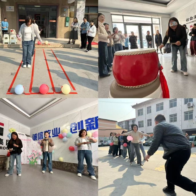 集團大廳精心設計的鮮花簽到板格外引人注目,大家紛紛在簽到板前合影留念,記錄下這一美好的瞬間。接下來,熱鬧的盲人擊鼓、顛乒乓球、紅黃藍等游戲環(huán)節(jié)將活動推入高潮。比賽中加油聲、歡笑聲此起彼伏,女員工們在游戲中盡情享受著團隊合作帶來的樂趣,充分展現(xiàn)了大家積極向上、團結協(xié)作的精神風貌。